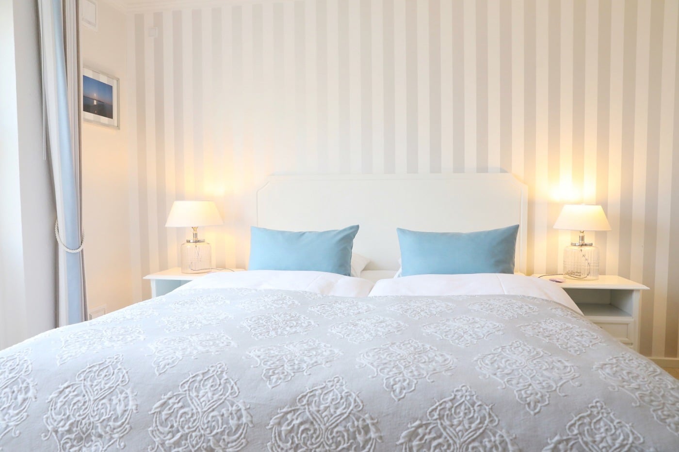Hotellets værelser og suiter er alle individuelt indrettet og holdt i en lys skandinavisk stil inspireret af den naturskønne beliggenhed blot et stenkast fra Flensborg fjord. Værelserne og suiterne – de fleste med pragtfuld udsigt til vandet; nogle endda med privat spabad – byder alle på særdeles god komfort med bl.a. flotte badeværelser og gratis internet. Til enhver overnatning er der naturligvis mulighed for at bestille bord til en lækker morgenanretning med husets specialiteter.